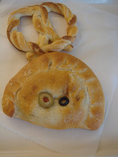 So while I was at Kahala Mall the other day, I figured I should stop by the bakery for one final visit...so sad, so final! For myself I had the half moon shaped pastry stuffed with ham, mustard and cheese. It was really good cause they put like a ton of mustard inside! A light crusty surface, melting cheese binding the ham to the buttery white innards and a rich smear of mustard. What made me laugh though, was just looking at the jalepeno and olive pressed onto the surface of the pastry. Every single one of these 'turnovers' had a single jalepeno and olive pressed in...even though those ingredients were not incorporated into the pastry in any other way! I didn't have a taste of the pretzel bread which I saved for mom.